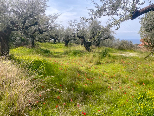Die Wiesen unter den Olivenbäumen werden täglich bunter. Am besten gedeihen die Blumen, wenn Gras und Klee niedrig stehen.