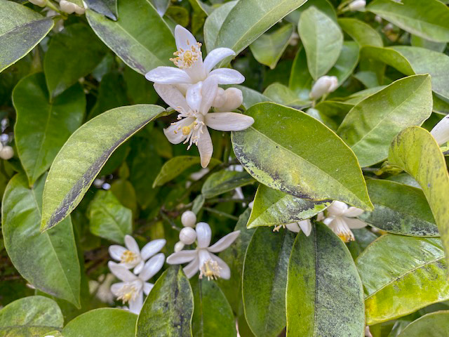Die Orangenblüten würde ich gerne beschnuppern und ja, der Orangenbaum ist prächtig!