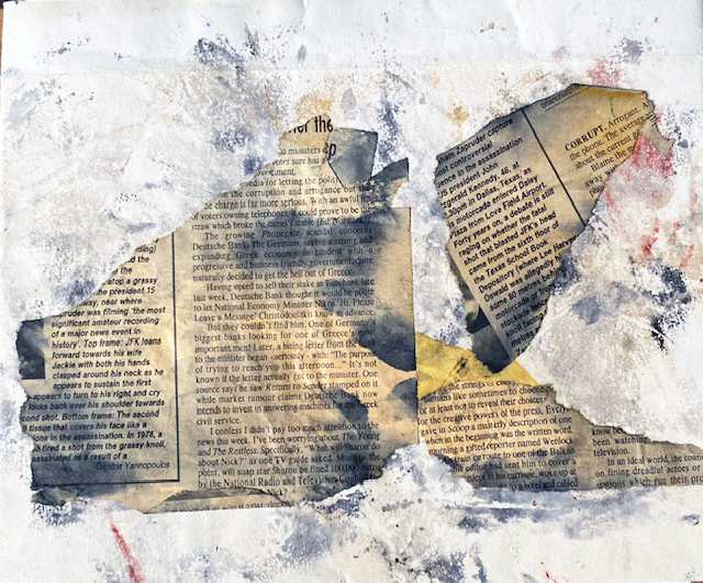 Ich war mir ganz sicher, dass dir noch etwas einfallen würde 🙂 Diese Collagen mit Malerei gemischt sind sehr ausdrucksstark. Wahrscheinlich sehen aber- wie so oft – Die Betrachter ganz anderes als die Malerin beabsichtigt hat. Besondsers gefallen mir das blaue und das mit den drei Zeitungsfetzen aus einer englischen Zeitung. Herzlichen Dank für den Beitrag !