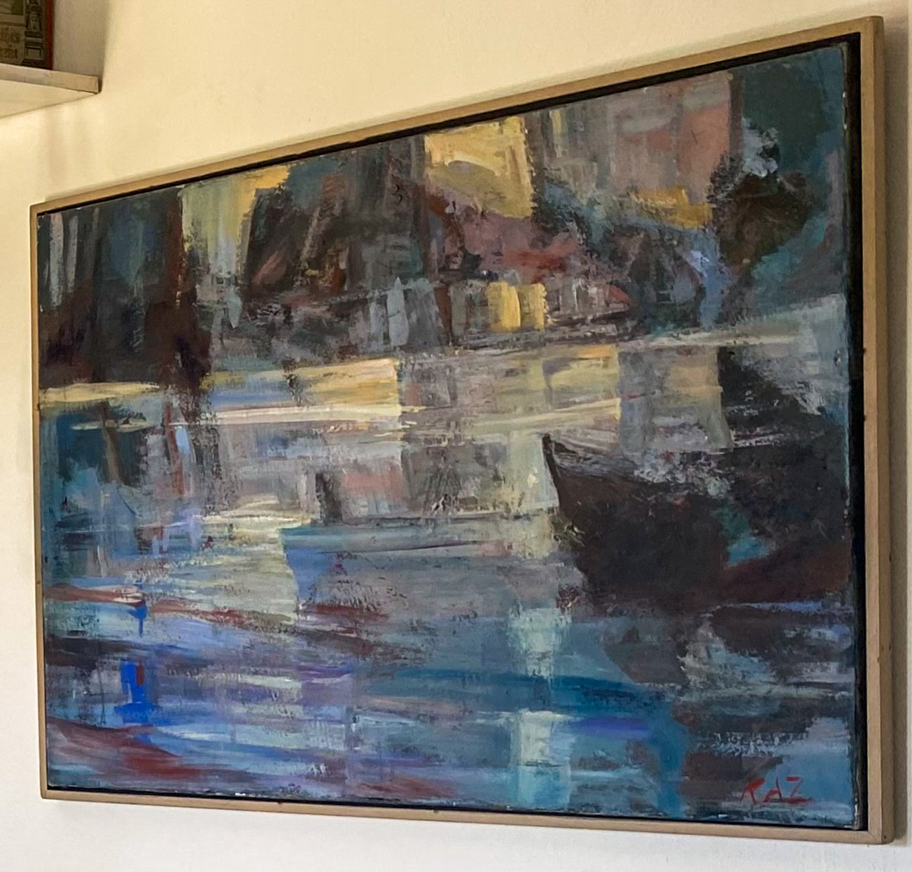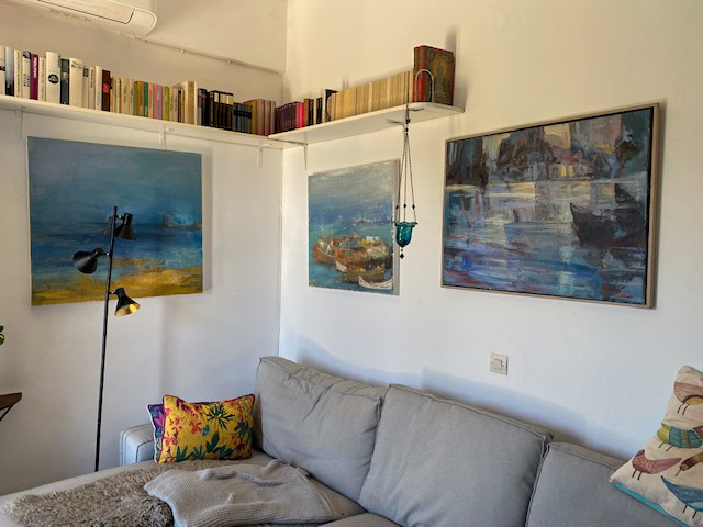 Wenn ich in einer fremden Wohnung ein früher gemaltes Bild entdecke, freue ich mich, als sei es ein Kind von mir, dem es in der neuen Umgebung gut geht. Wenn es dann auch noch, wie hier, seelenverwandte Freunde gewonnen hat – was gibt es Besseres?