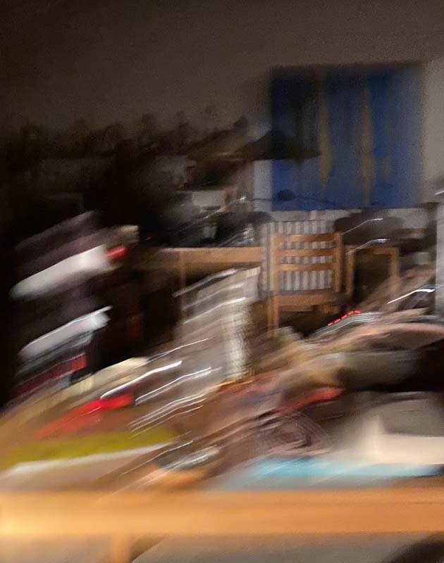 Zur Unschärfe: Mit meinem Handy kann ich nur ansatzweise den Effekt erzeugen. Ich versuchte es gestern abend, indem ich eine dunkle Ecke des Raumes als Focus wählte und dann das Handy schnell bewegte. So entstand eine Reihe unscharfer Raumbilder.