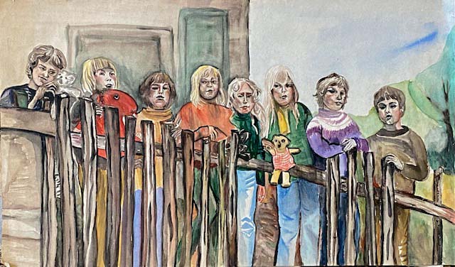 Frankfurter Kinderladen, 1974, Aquarell nach Foto.
