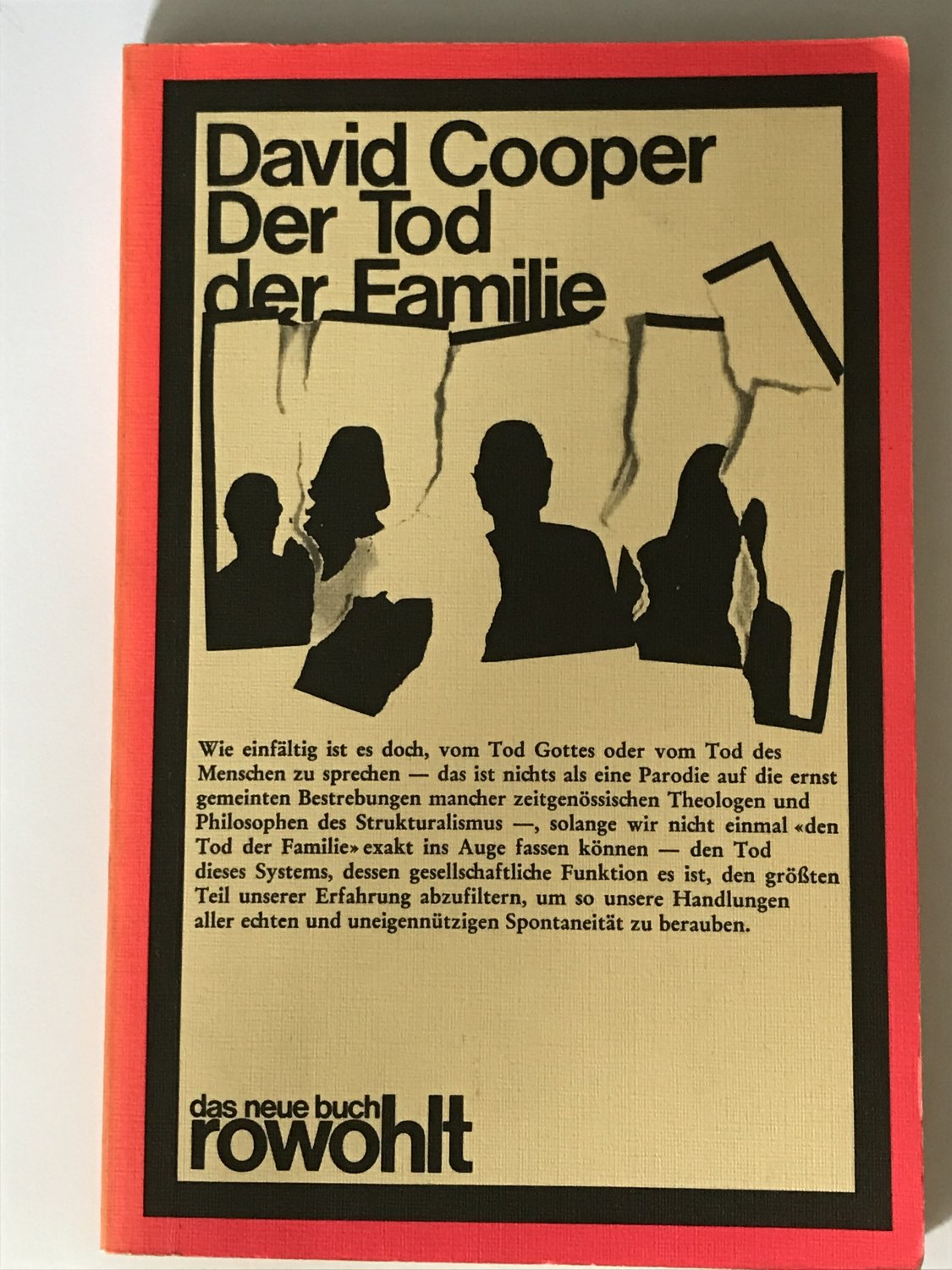 Cooper, der den Begriff „Anti-Psychiatrie“ prägte, und andere Vordenker jener Zeit revolutionierten die Lehre von den psychischen Erkrankungen. Psychosen seien Ergebnis der gesellschaftlichen Verhältnisse, und die Institution, die die Individuen entsprechend zurichte und konditioniere, sei die Familie. Und so war es nur konsequent, den Tod der Familie zu fordern. 1971 erschien dann das Buch „The Death of the Family“, und ja, auch ich fand, dass es im Großen und Ganzen ins Schwarze traf. Von ganzem Herzen begrüßte ich die damals aufkommende anti-autoritäre Erziehung und beteiligte mich 1971 am Aufbau eines Kinderladens, den mein Sohn im Alter von 2-7 mit großer Freude besuchte. Für mich war diese Initiative die Rettung, denn nur durch sie konnte ich Arbeit und Familie in Einklang bringen.
