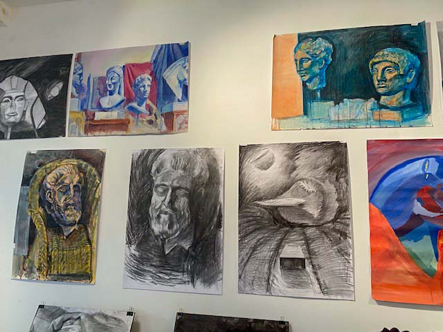 In der Zeichenschule. Ausstellung der Schülerzeichnungen, Umgebung