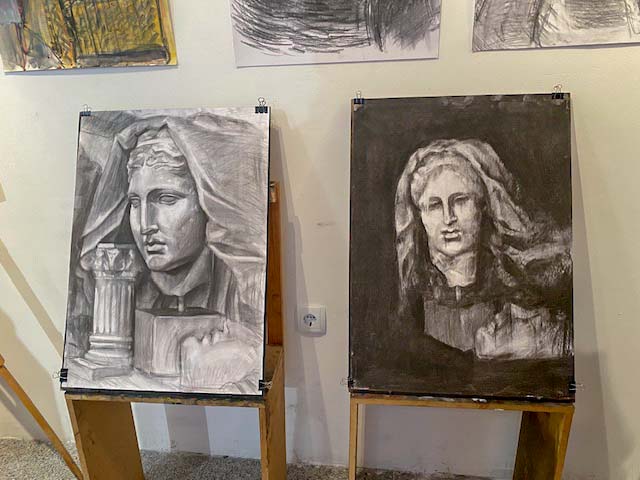 In der Zeichenschule. Ausstellung der Schülerzeichnungen, Umgebung