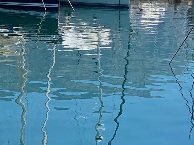 Still und faul lag der Segelhafen in der Mittagshitze da, der Anblick der Boote war der gewohnte, aber ihre Spiegelungen sind immer ein wenig anders und wollten daher auch heute fotografiert werden.