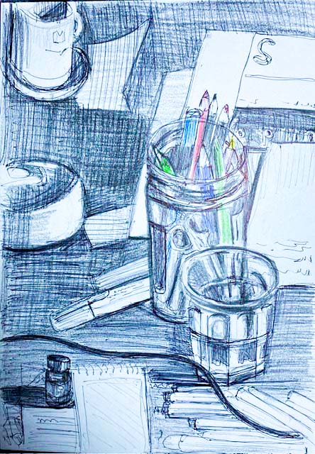 ← Alltägliches Zeichnen mit „herbstzeitlos“ (Juricka): (7) Schreibtisch-Sammelsurium im Hochformat