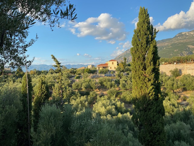 Hier bei uns in der südlichen Peloponnes ist der Oktober so ganz anders als bei euch in Deutschland: die Natur beginnt sich nach dem langen Sommer zu beleben und zu grünen, es ist eine hoffnungsvolle, zu Tätigkeit anregende Atmosphäre. Natürlich gibt es auch hier welke Blätter und frische Winde, aber weder Nebel noch Düsternis. Die meisten Bäume sind immergrün und lassen nur wenige alte Blätter und Nadeln auf den Boden fallen. Kahl werden nur die wenigsten, und auch das hat noch Zeit. Noch stehen Aprikosen-, Feigen-, Granatapfel- und Quittenbäume im vollen Laub.