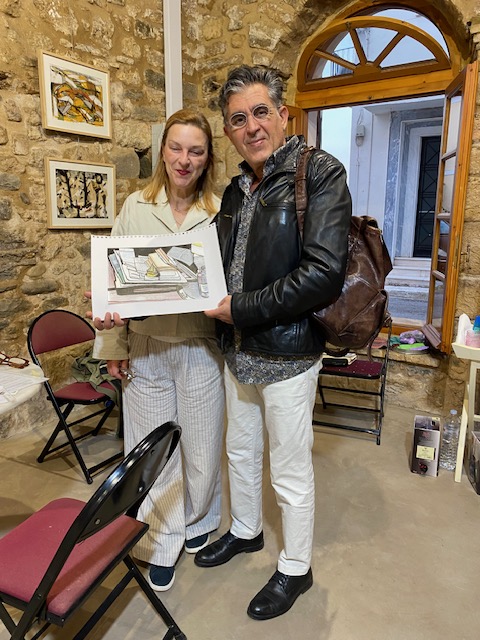 Ein griechisches Paar mit Zeichnung (https://gerdakazakou.com/2025/09/29/taegliches-zeichnen-stilles-leben-auf-dem-schreibtisch-mit-boetchen)