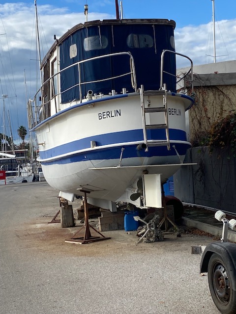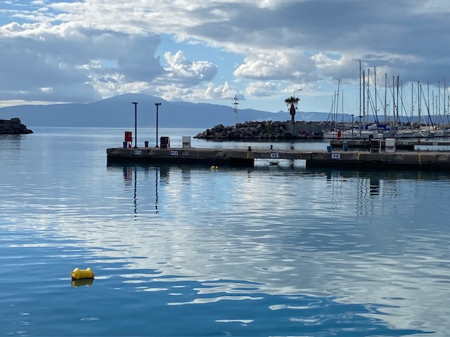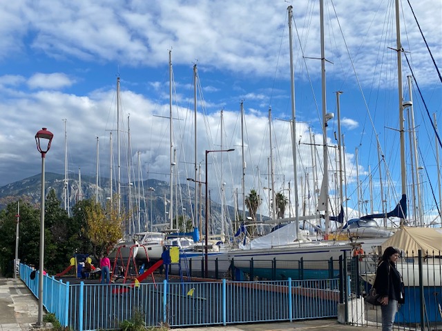 Der Segelhafen mit Spielplatz und aufgebockten Booten, um 14.02 Uhr