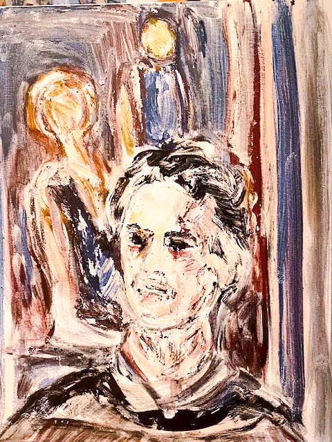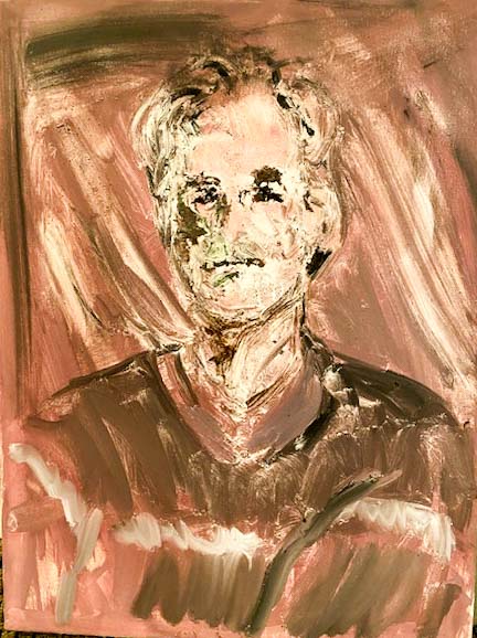 Noch ein Portrait konnte ich heute malen, bevor mein Sohn die Heimreise nach Berlin antrat. Diesmal saß er vor einem meiner Bilder mit zwei Frauen Modell.