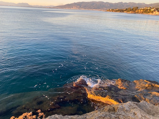 Jahresbeginn-Meeresspaziergang mit Sonnenuntergang