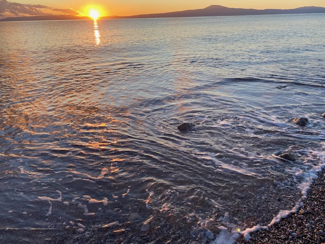 Jahresbeginn-Meeresspaziergang mit Sonnenuntergang