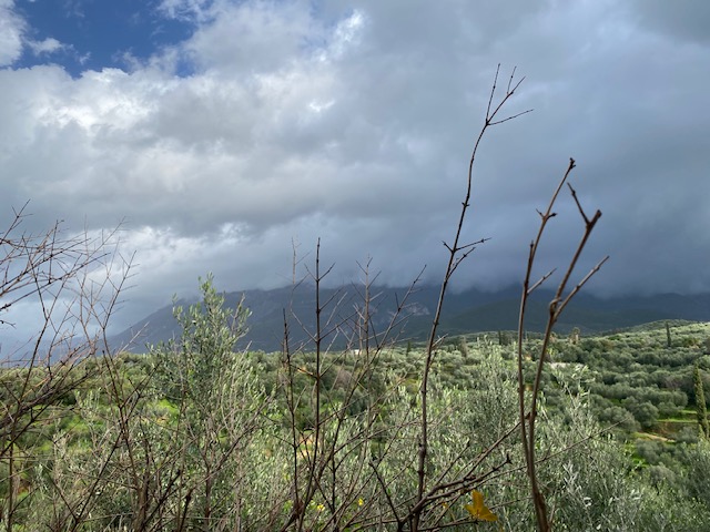 Wohltuend und belebend ist dieser Wechsel zwischen Hell und Dunkel. Jetzt eile ich, bevor der Regen wieder einsetzt, Sellerie, der für die Bohnensuppe gebraucht wird, aus dem Minimarket im Nachbardorf zu holen. Auch Brot und Joghurt sind ausgegangen. Also los!