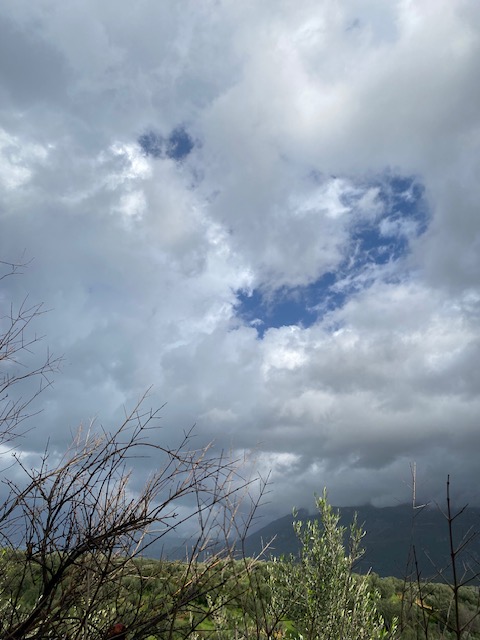 Wohltuend und belebend ist dieser Wechsel zwischen Hell und Dunkel. Jetzt eile ich, bevor der Regen wieder einsetzt, Sellerie, der für die Bohnensuppe gebraucht wird, aus dem Minimarket im Nachbardorf zu holen. Auch Brot und Joghurt sind ausgegangen. Also los!