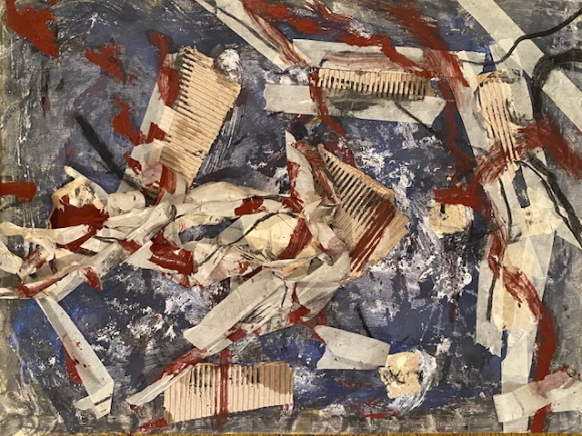 Auch gestern habe ich wieder zu malen versucht, um mich mit meinen Alpträumen zu konfrontieren, vielleicht, dass ich sie so überwinden kann. Ich fotografierte vier Stadien der Bildentstehung, die zusammen gehören, wenngleich nur das letzte noch vorhanden ist. Das werde ich morgen auch zerstören und ein neues, hoffentlich freundlicheres Bild beginnen.