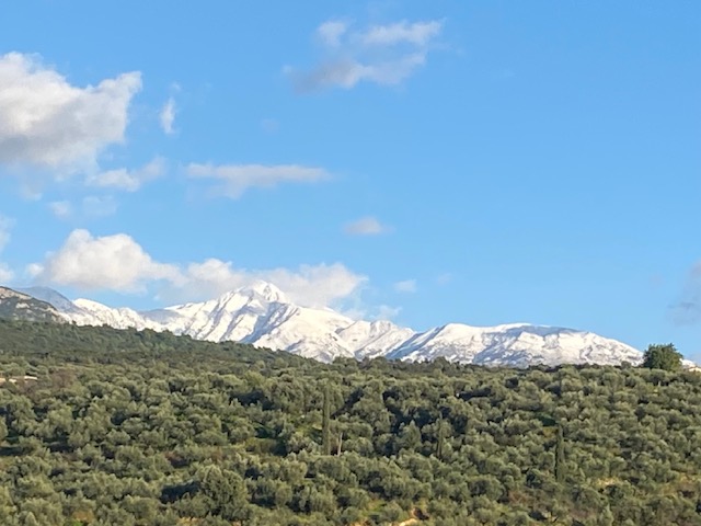 Als erstes halte ich nach den Schneegipfeln Ausschau: hat es in der Nacht wieder geschneit? Ja, der Schnee bedeckt jetzt auch die niedrigeren Hänge des Bergmassivs, liegt aber nicht sehr dicht.