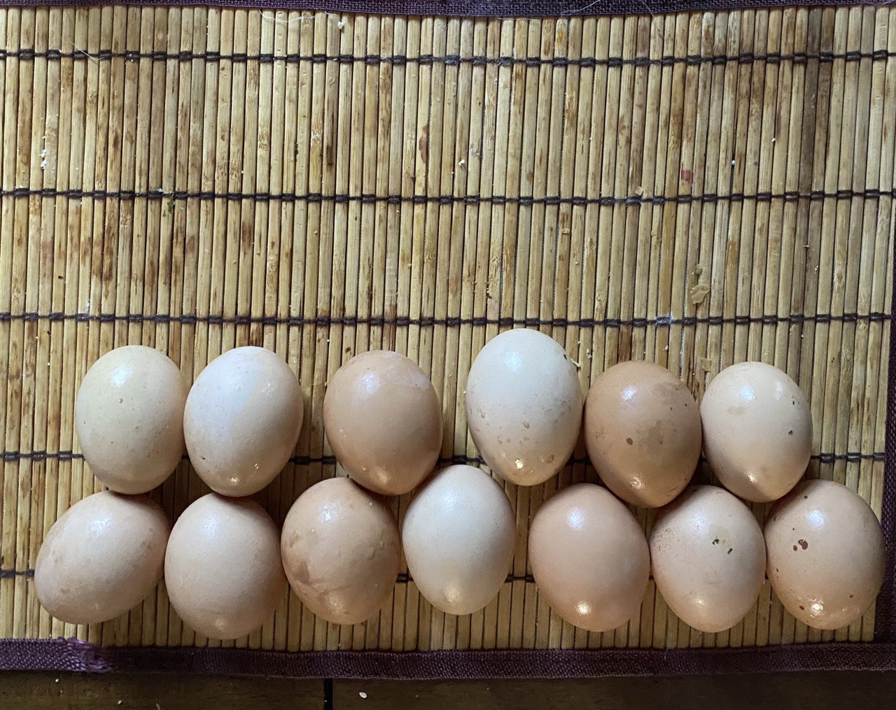 Ich nahm die Eier aus der Tüte, legte sie vorsichtig auf die Matte auf dem Esstisch, zählte sie, freute mich an ihrem Anblick und am unerwarteten Reichtum. Danke herzlich für den Eiersegen, Herr Nachbar!