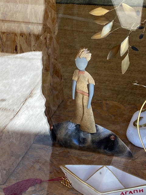 Auf dem Bötchen steht das magische Wort, das alles im Leben verändert: ΑΓΑΠΗ (agape), Liebe, daneben die neue Jahreszahl. Liebe also sollte das Thema des Jahres 2026 sein, und der kleine Prinz sein Repräsentant. Denn was ist es, was den Kleinen Prinzen so besonders macht? Die Liebe zu seiner Rose. Und seine Einsicht, dass man nur mit dem Herzen gut sieht.