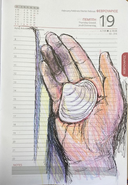 Kalenderblätter 18-20/2: Olivenholz, Muschel, Kletterwurzel des Efeu