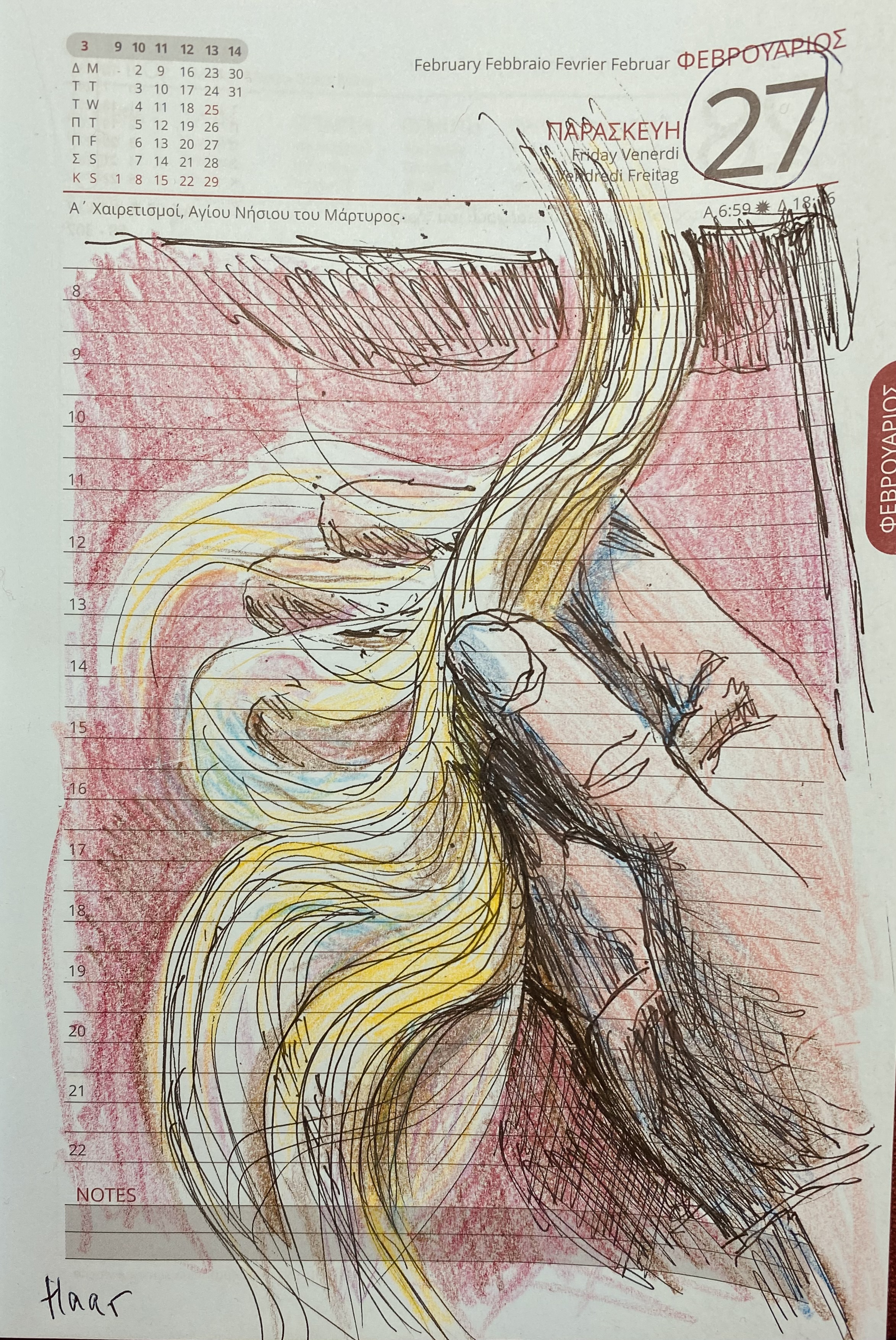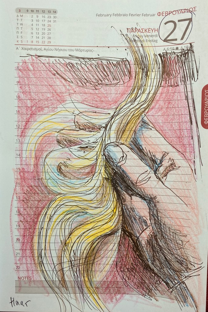 Die letzten drei Kalenderblätter des Monats Februar schicke ich vom Handy, weil unsere Internet-Dienstleister seit gestern nur gelegentlich funktionieren. Ich vermute, der Grund liegt in den euch allen bekannten Ereignissen, denen wir geographisch ziemlich nah liegen.