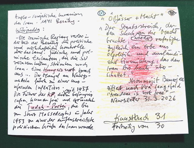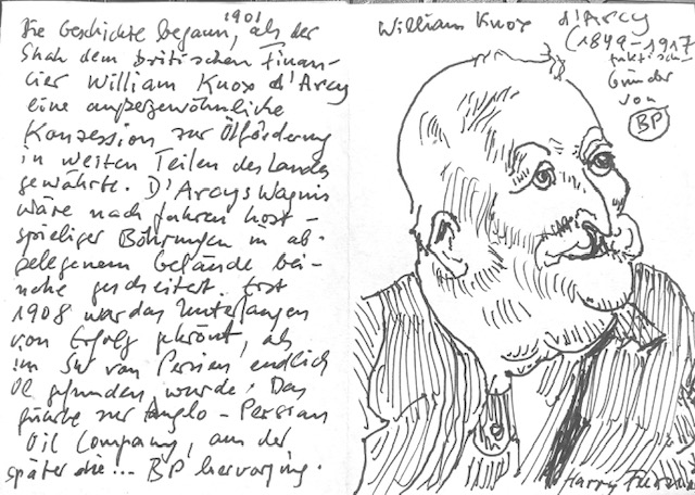 Gestern las ich im Newsletter von Vera Lengsfeld den Artikel Teheran, 1953: Der Putsch, der die Ölpolitik veränderte des indischen Journalisten Shoumojit Banerjee, exzerpierte ein paar Textstellen und illustrierte sie mit Portraits der Protagonisten (hier). Heute kommt nun die Fortsetzung. Allerdings bin ich wieder nicht bis zum Putsch gegen Mossadegh gekommen, mit dem alle heutigen Erzählungen anfangen. Die Vorgeschichte hat eben auch eine Vorgeschichte, die ich kaum kannte. Und so blieb ich erneut in der Vorgeschichte der Vorgeschichte des heutigen Dramas stecken.