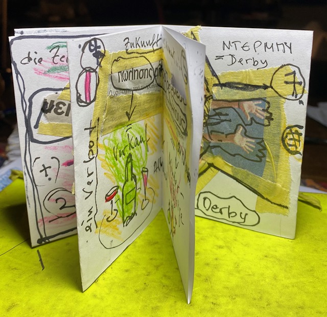 Heute abend am Kamin hatte ich Lust, noch ein Kunstbuch zu falten. Doch zu welchem Thema? Ich nahm die Lokalzeitung, die als Anzündehilfe dient, zur Hand. Das erste Wort, auf das mein Auge fiele, sollte das Thema sein. Und was war das erste Wort?
