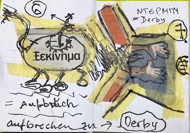 Seite 6-7: Das zeitbezogene Wort ist hier ξεκίνημα = Aufbruch zu neuen Ufern? Neubeginn? (Hallo, Myriade!) Im Zeitungsartikel geht es ganz banal um den Besuch eines Derbys der lokalen Mannschaft.