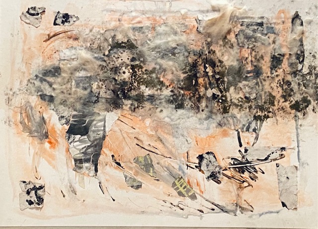 Ich löste die Bilder von den Pappen, soweit das möglich war, fotografierte sie und hängtew sie zum Durchtrocknen auf. Wahrscheinlich werdee ich sie wegwerfen müssen, denn ich möchte keine weitere Schimmelbildung im Atelier riskieren, Meine Bronchien schrieen schon heute Alarm.