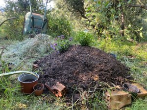 Also fuhr ich ins Nachbardorf zum Zeitungskiosk. Und kaufte Blumenerde und Samen. Und stieg in unserer Taverne aus, um das Handy aufzuladen, und während es auflud, würde ich schwimmen gehen. Ich würde mich in die Sonne legen und mich in aller Ruhe trocknen lassen. Und eine Portion Pastitio fürs Mittagessen bestellen und mit nach Hause nehmen. Und die Erde ausladen und auf meinem vorgestern erschaffenen Hügelbeet verteilen,